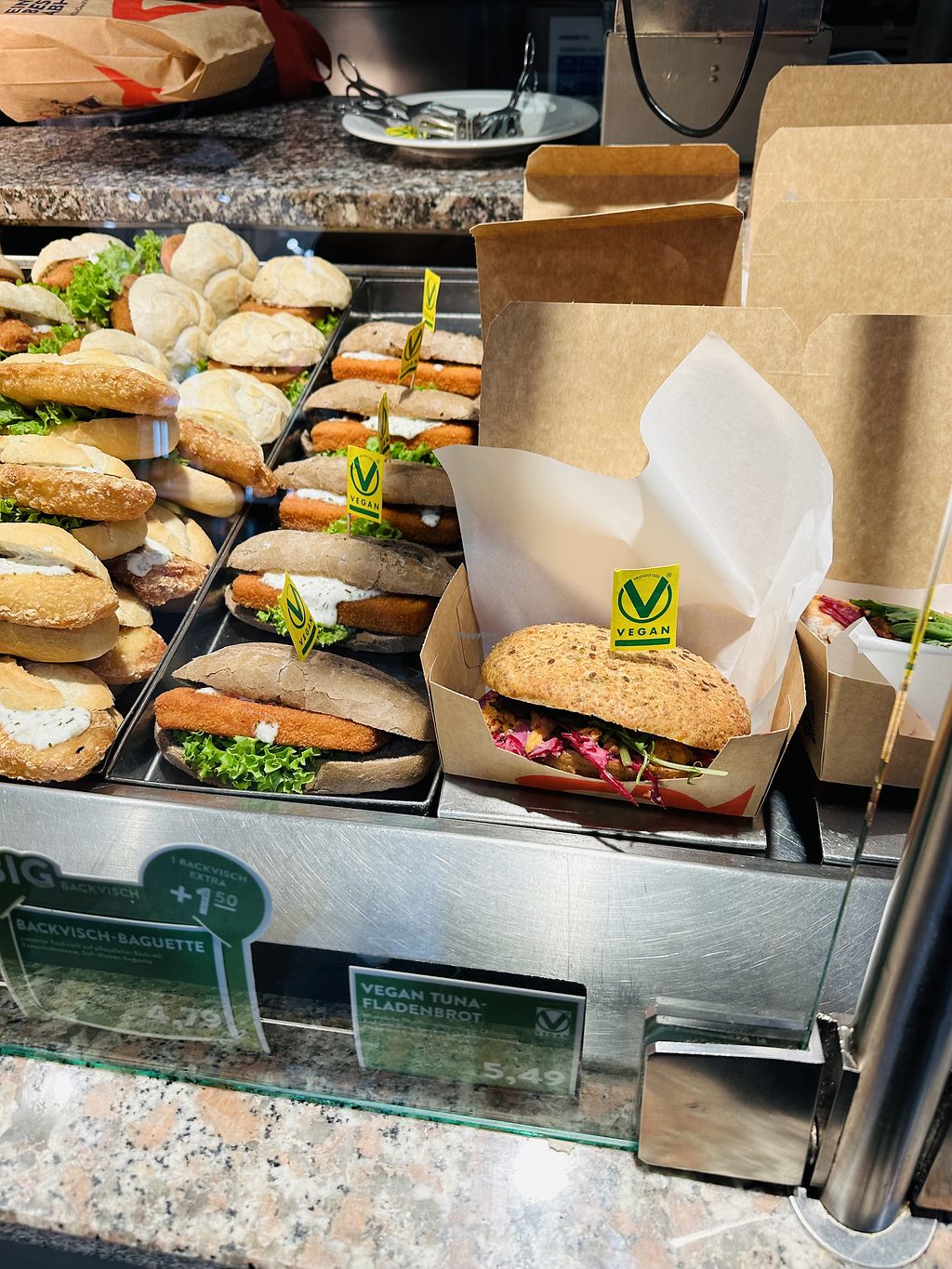 Serves seafood, vegan options available. Chain of fast-casual seafood eateries in Germany, Belgium, Czech Republic, Austria, Switzerland, Hungary, and Romania. Serves a vegan plant-based spicy tuna baguette and a “BackVish” baguette. Open Mon-Sat 08:00-20:00. Closed Sun.