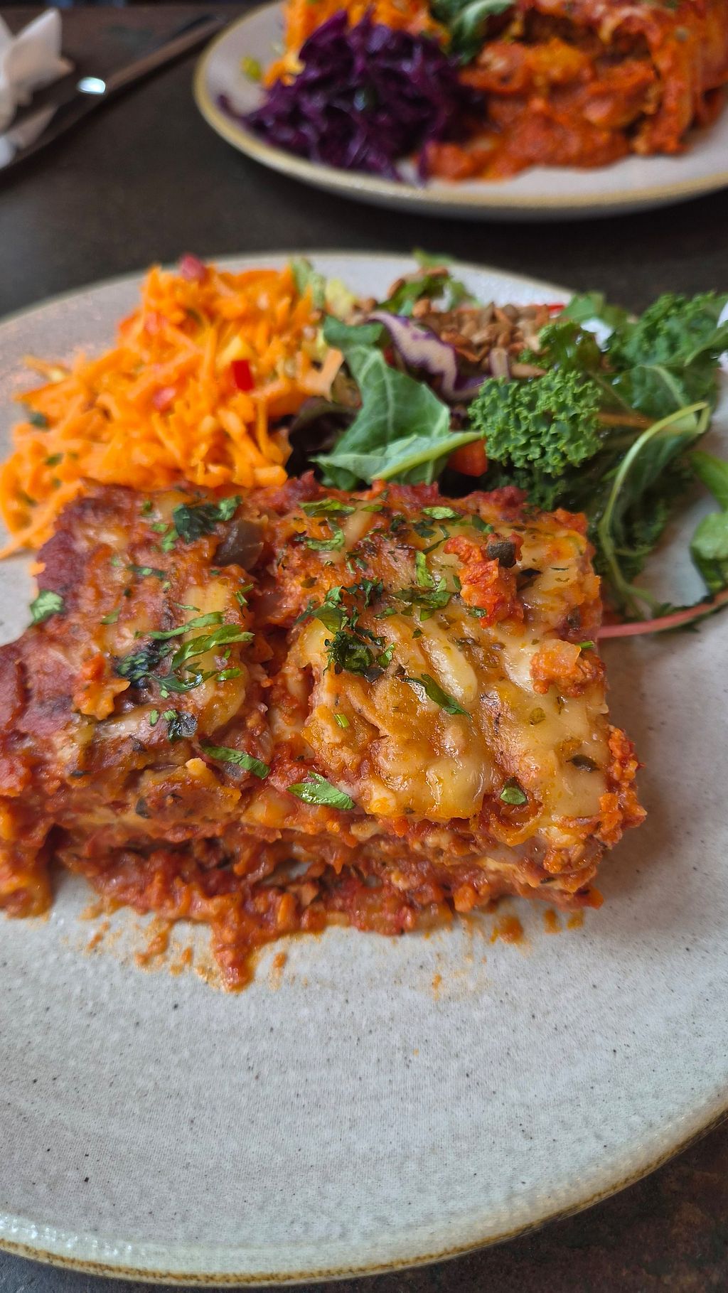 Vegan only restaurant with good range of savoury and sweet options. Had the lasagne which came with nice some salad. All really tasty. Took away a slice of apple pie and a couple of truffles for later. Both lovely