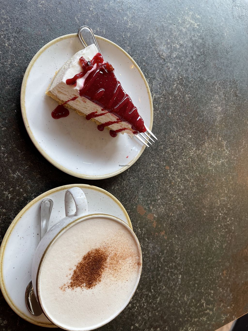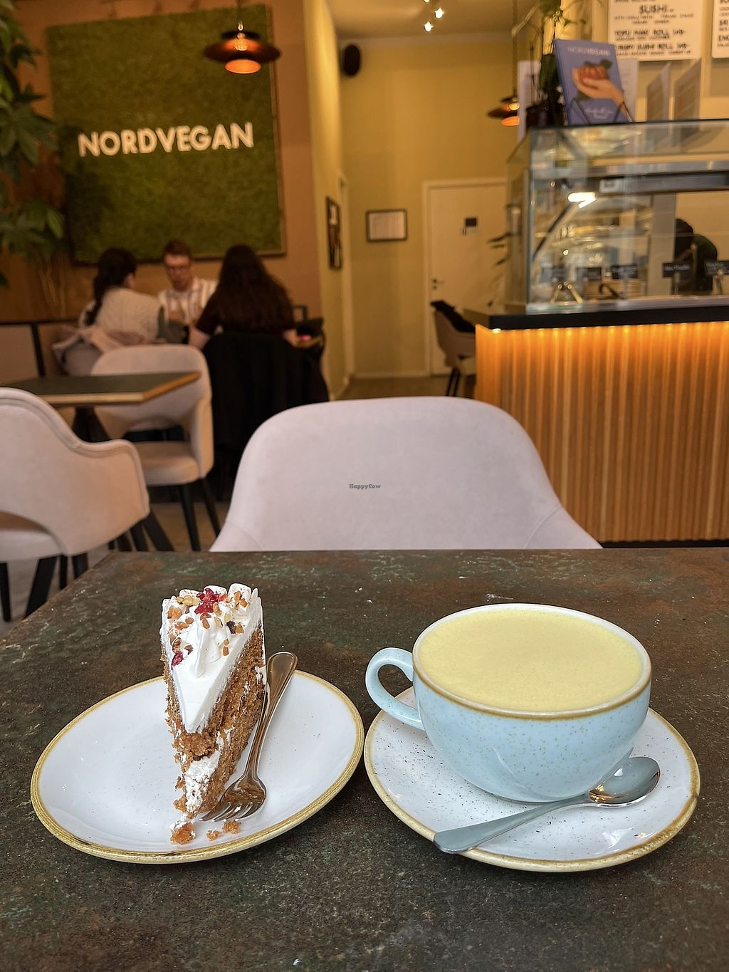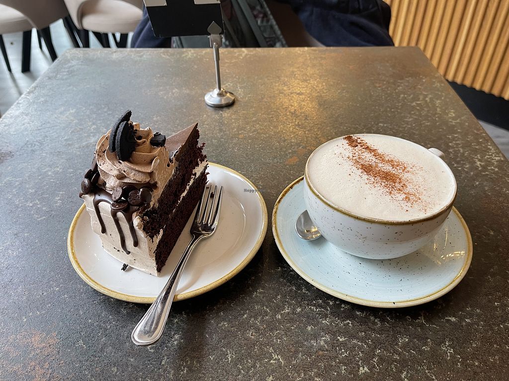 Fully vegan place with lots of options for lunch and dinner and desserts. I had the lasagne with a side of tofu and a Chai latte with Oatly milk and Berry Cheesecake. Relaxed atmosphere, lots of other people sitting solo so didn’t feel weird.