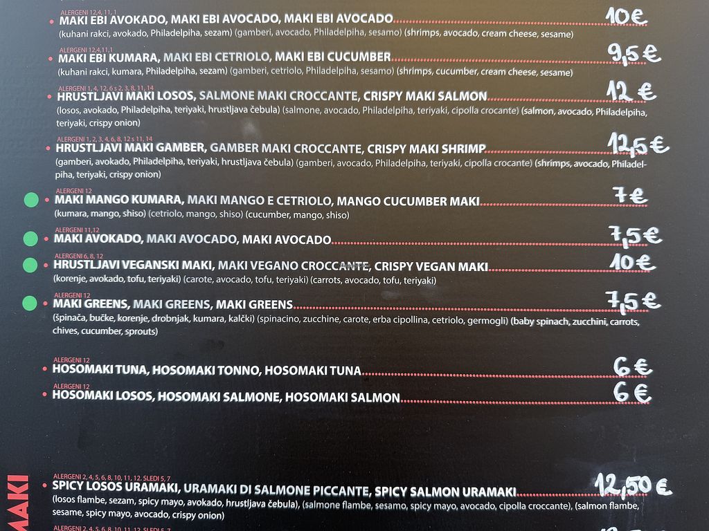 My favourite was the beet-tofu uramaki. Crunchy vegan maki was also very special. The cucumber-mango maki was okay, but slightly boring compared to the other flavours.