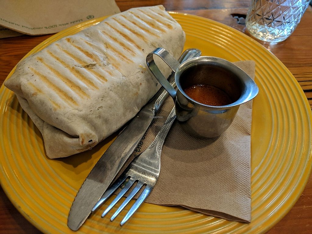 The vegan burrito is very good, with a spicy sauce on the side so you can make yours as mild or hot as you like. Very filling