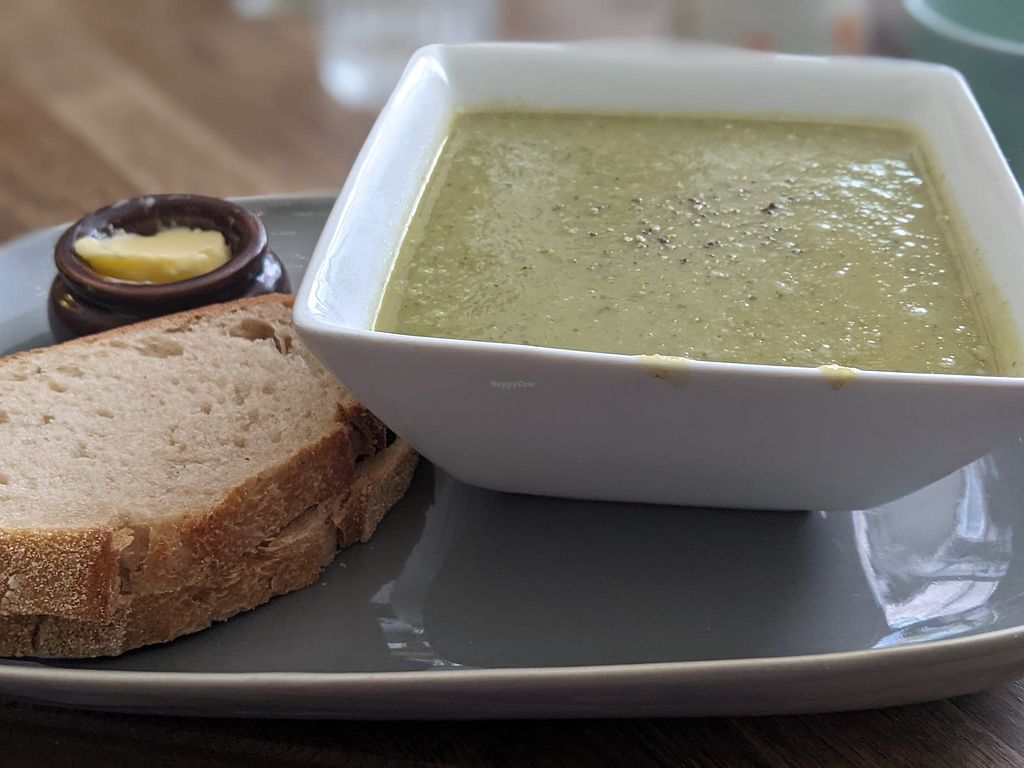 Soup with bread and vegan spread