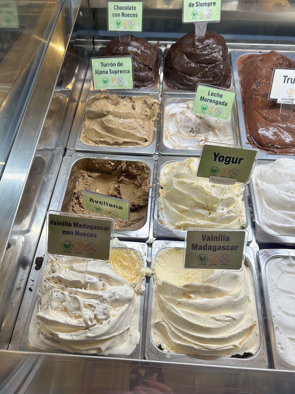 This store has wonderful delicious and creamy options that are vegan. Their sorbet style options are not bad at all( the mojito one was perfect). But it makes is specially happy to see creamy vegan options like bombón Roche, leche merengada, various chocolate options, vanilla, turrón...