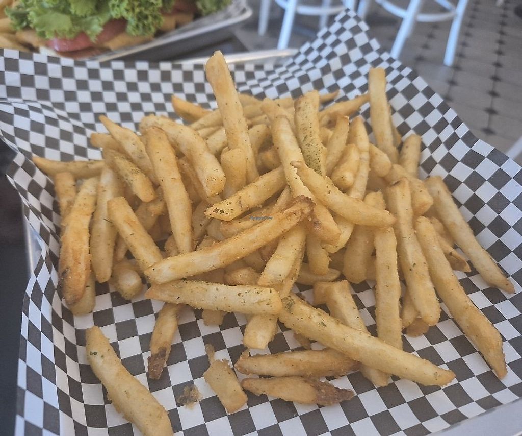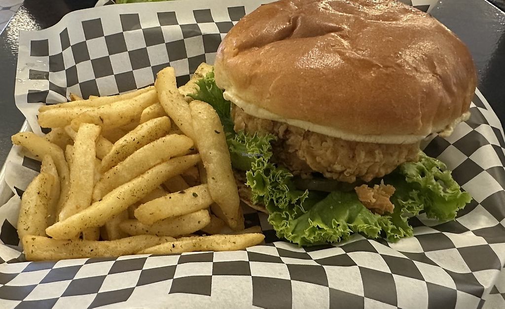 We ordered the chicken ranch sandwich and it was delicious, it's a huge fluffy patty, and was possibly the best mock fried chicken I've had, and the bacon was so good, also the bun too, I thought was extra yummy because my past experiences, vegan buns don't always taste great. We got an order of fries and they tasted super light and crispy. For fast food it all tasted quite fresh!