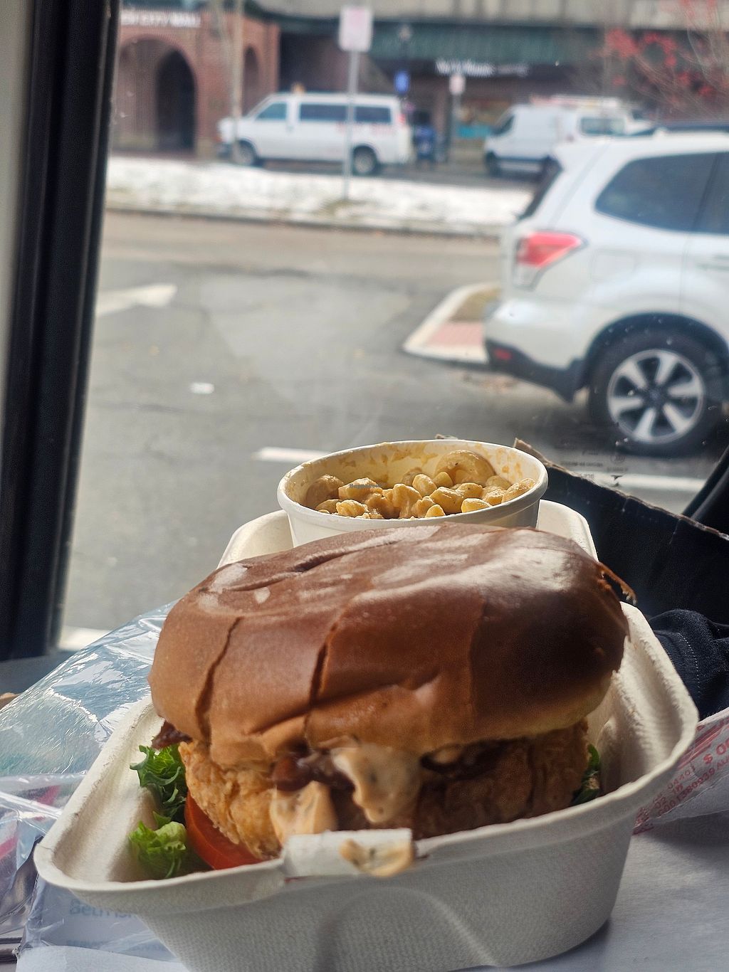 Read moreNot Ya Mama’s Vegan, recently relocated from Worcester, serves the BEST vegan chick’n patty. It’s moist, plump, and thick and made fully in-house, confirmed by the nice man at the counter. So good, we got it on two dishes, the Caesar salad and the crispy chick’n sandwich. Not to discount its other offerings. It just means we’re saving it for the next time we roll through (I’m looking at you, Reuben sandwich).