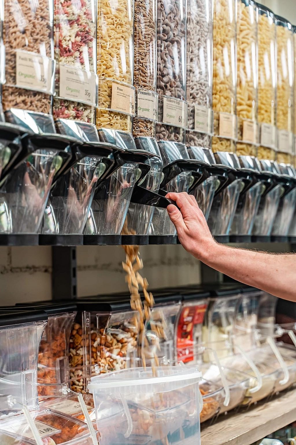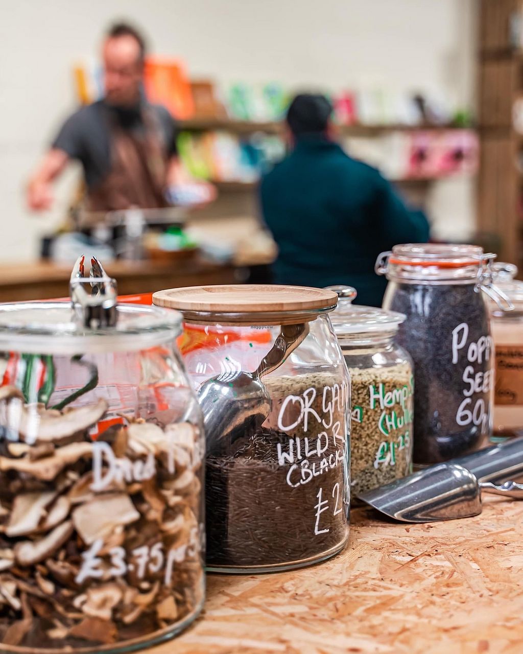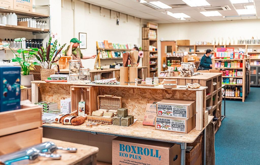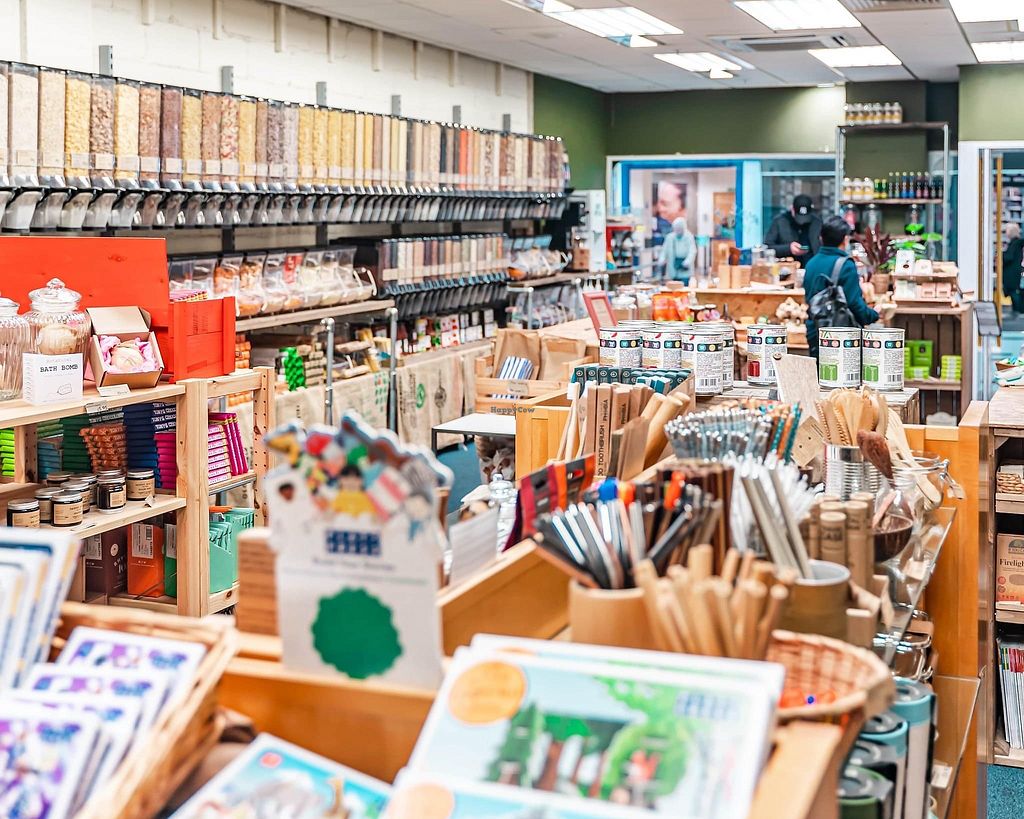Vegetarian refill shop offering breads, vegan cinnamon rolls, vegan chocolates, package-free dried foods, herbs, spices, oils, vinegars, household cleaning items and body care products. Open Mon-Wed 09:30-17:30, Thu 09:30-19:00, Fri-Sat 09:30-17:30, Sun 11:00-16:00.