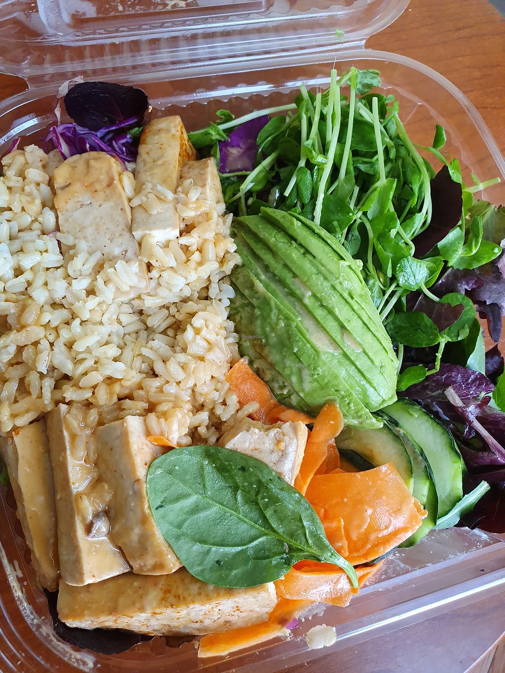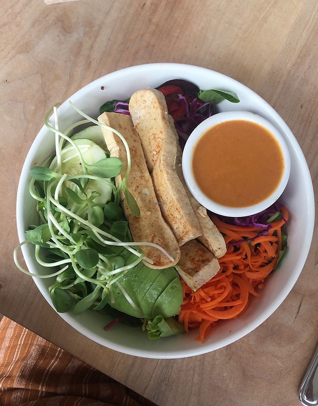 A nice little place with many bowl, Acai, sandwich, and smoothie choices. Overall it feels like a better spot for warm weather with it’s almost exclusive outdoor seating and limited warm drink menu, but overall a good sampling of the menu would make me go back again if I’m in the area. The marinated tofu was a good choice, nicely seasoned.