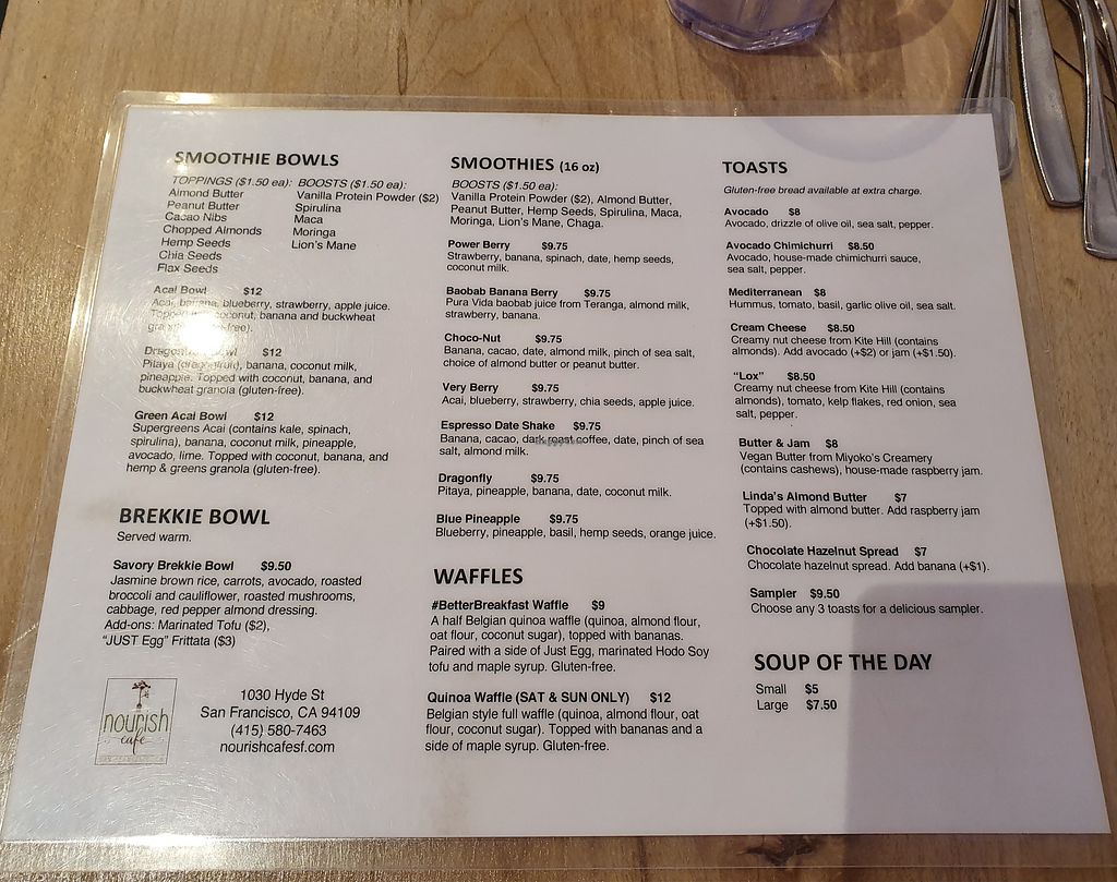 Read moreWhile things are a bit on the pricey side, the offerings are more filling than they first appear and the quality of the ingredients is, to me, obvious. No other place I've been to has consistently had such perfect avocados and tomatoes each time I've been (to either of the two Nourish Cafe locations), and everything always looks and tastes very fresh.