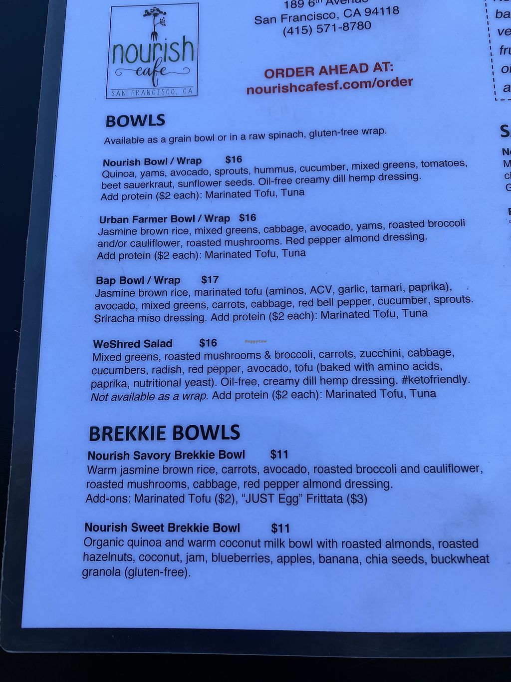 Its nice seeing a fully plant based cafe in the Richmond neighborhood. Nourish Cafe has a really yummy selection of bowls, & wraps. Outdoor seating only. I've tried everything here, & all are delicious, except the sweet brekkie bowl 😝