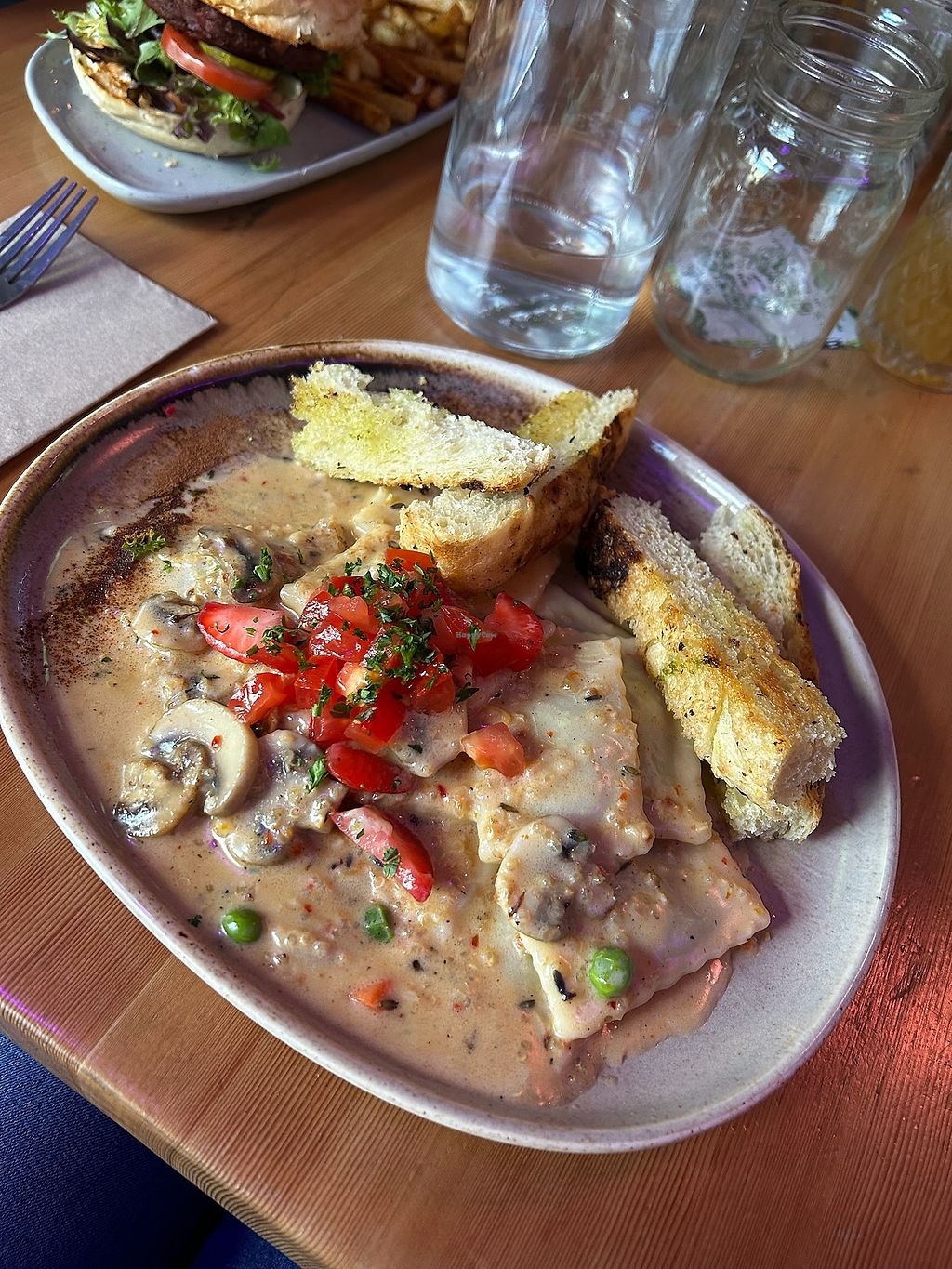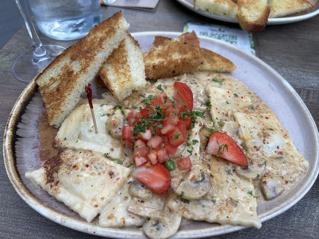 Veggie poutine (didnt try) mushroom ravioli, and ramen. The ramen was …