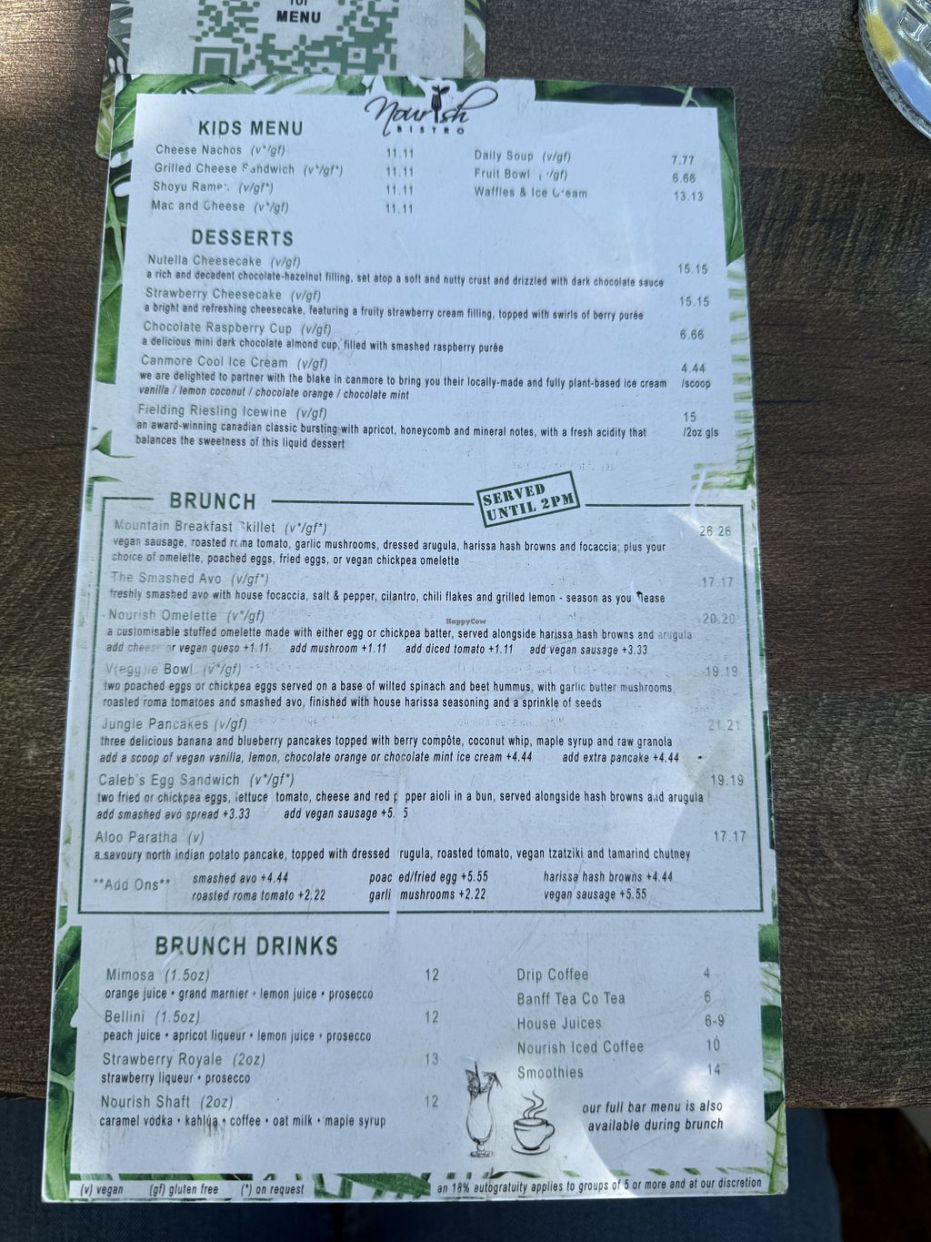 Brunch menu served daily until 2pm.