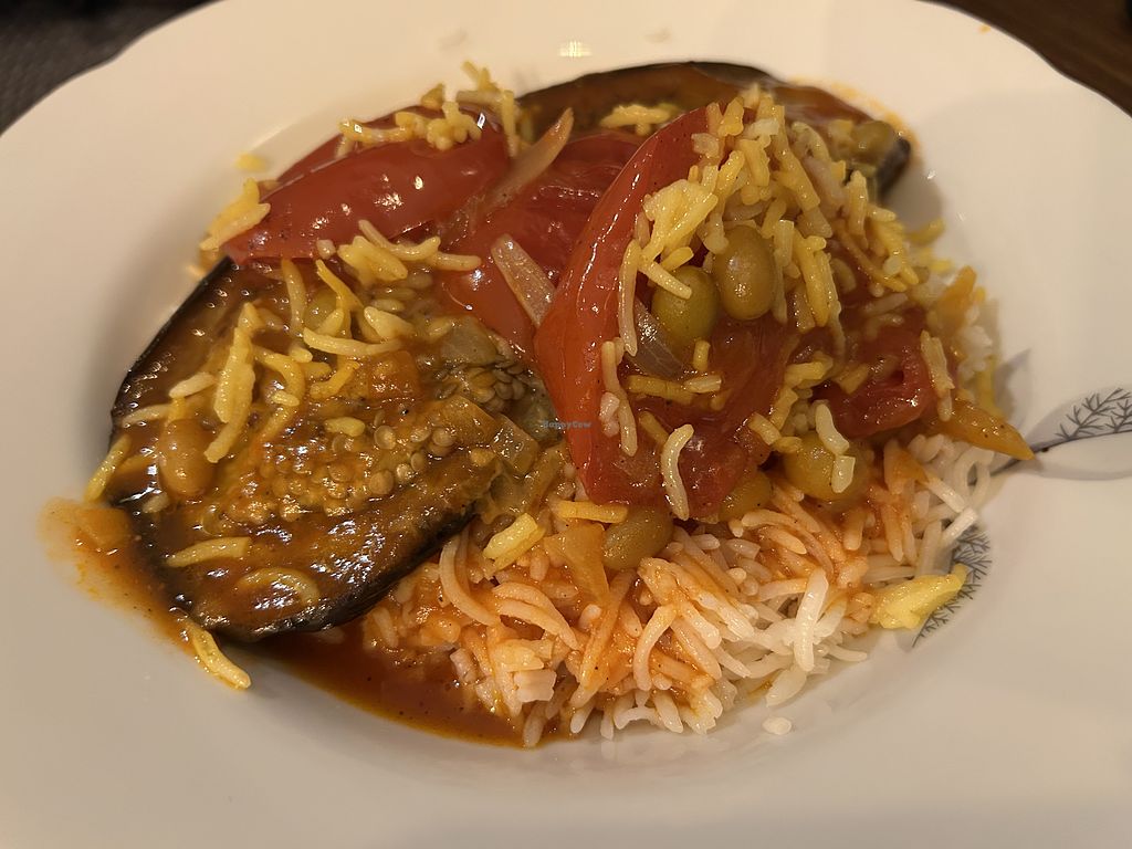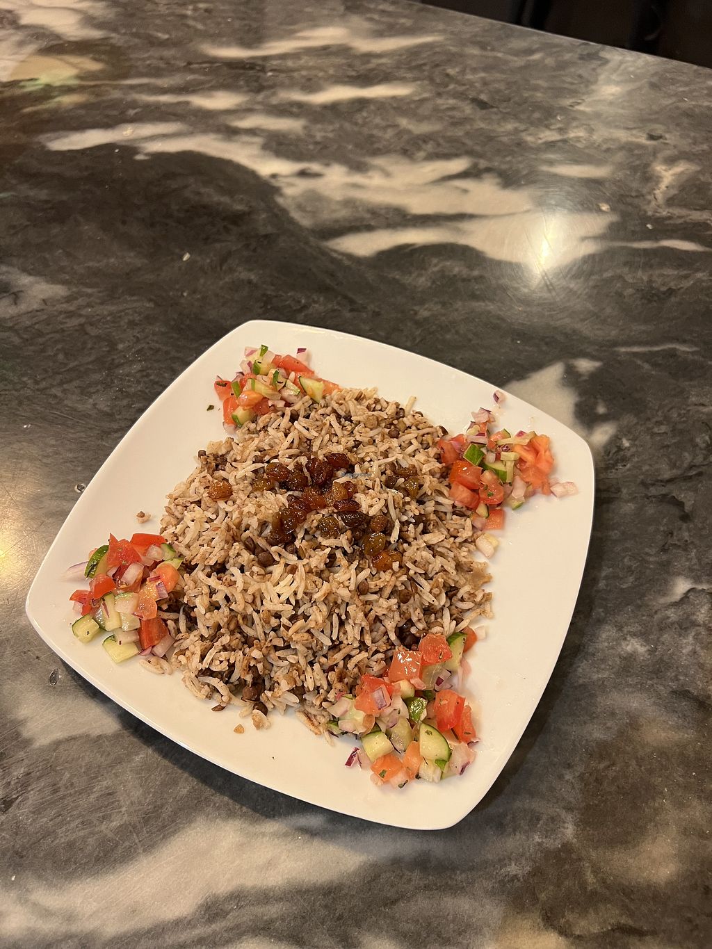 Pros: El postre fue una fantasía, El hummus, La berenjena con arroz