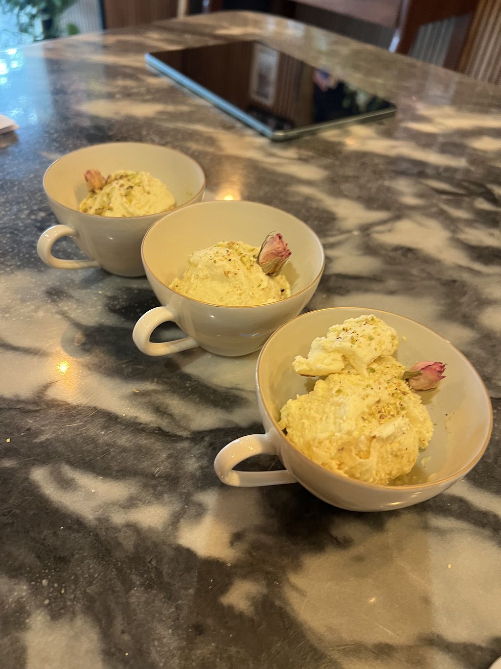 Pros: Helado de azafrán con pistacho , Toda la comida buenísima , Ambiente relajado
