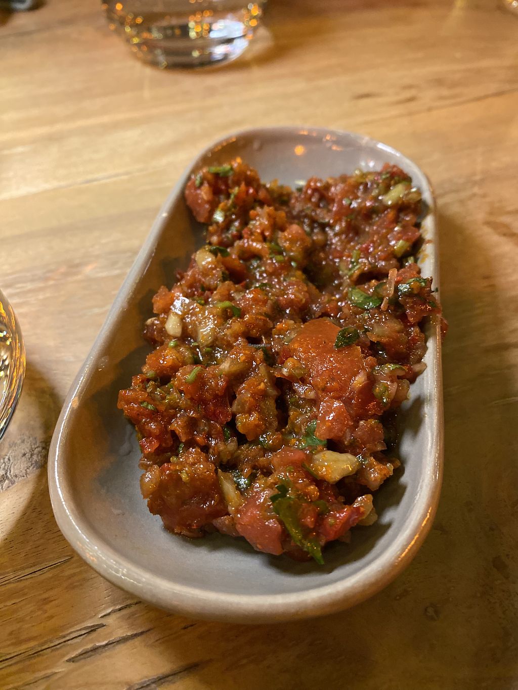 Read moreFirstly, the staff were very confused about what vegan meant. There were no labelled vegan starter/mezze options and when we asked they said only hummus was vegan and they wouldn’t serve us falafel even though we knew they had vegan falafel as it’s part of a main. They then brought the hummus and when we started asking if they had vegan bread to go with it they went to check with the chef and came back and took the hummus away as they said it contained egg mayo! I have no idea whether it was vegan or not as egg would be a weird thing to have in hummus, but the confusion made it all very stressful. They then brought us a couple of plates of a tomato salsa and aubergine dish, which I wasn’t a fan of.