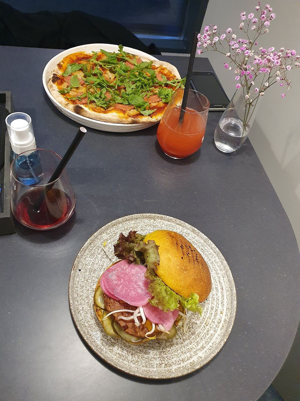 Nova burger and pepperoni pizza