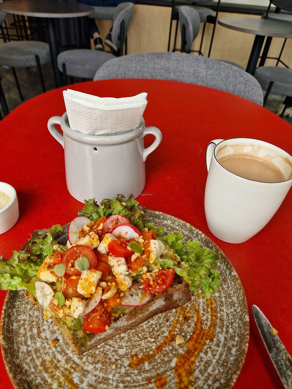 Morning menu: toast with vegan cheese and guacamole