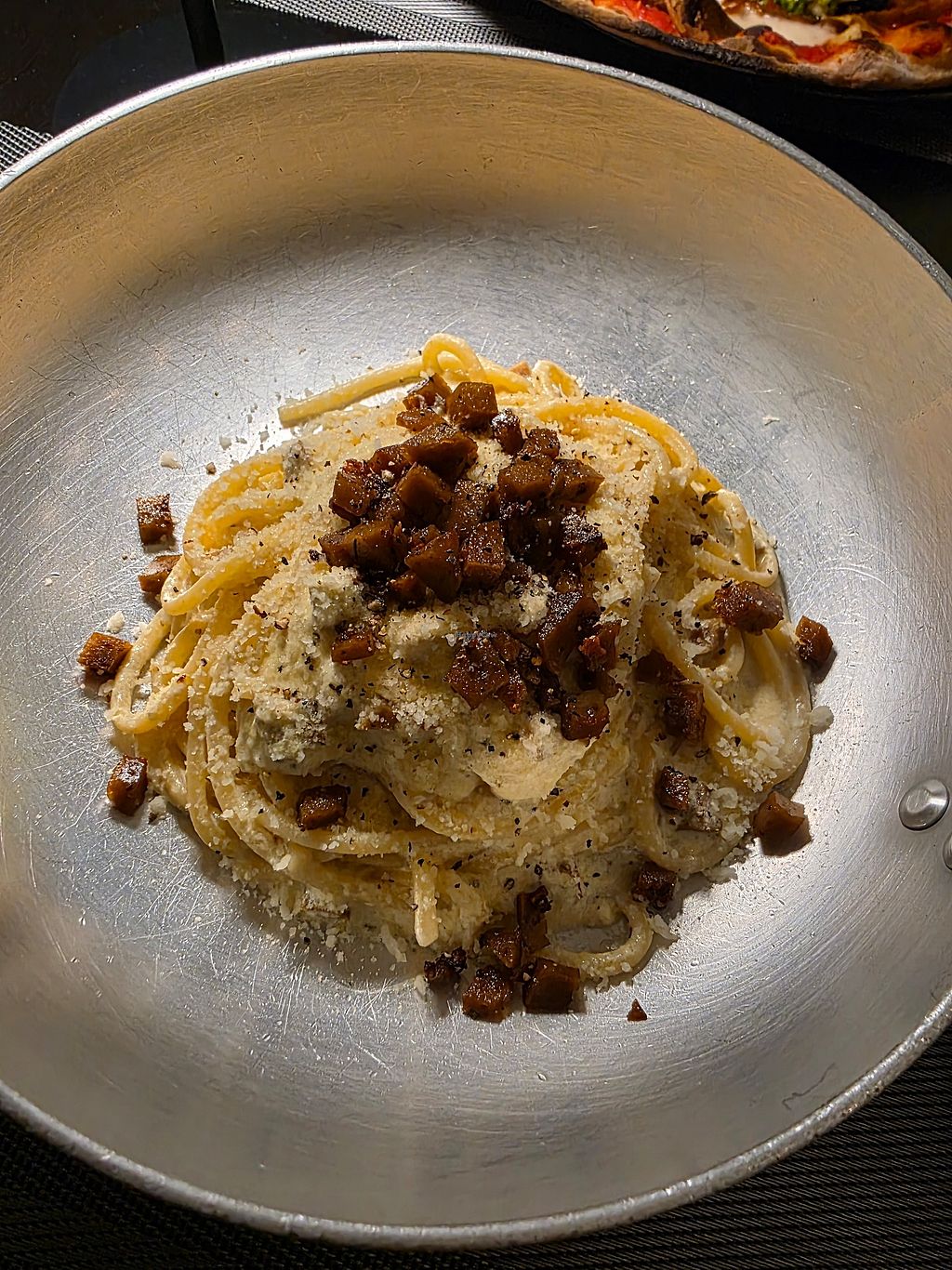 I am almost speechless at how delicious this place is. Every single item we got was so carefully crafted and unique - I had never had vegan burrata, carbonara, or cacio e pepe in my 11 years of being vegan. The vegan creme brûlée also was from a dream! The space is small and intimate and everything is crafted with love.