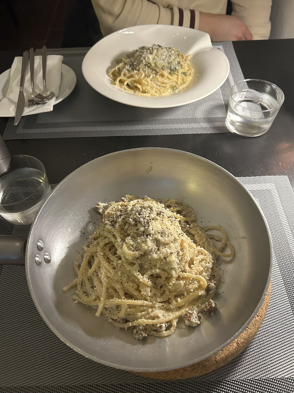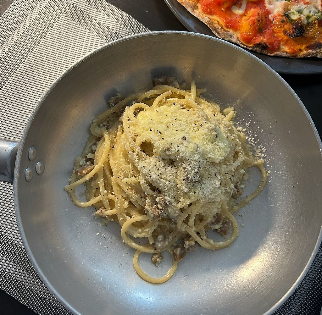 We ordered the carbonara, the fabiana pizza and the tiramisu 🤩