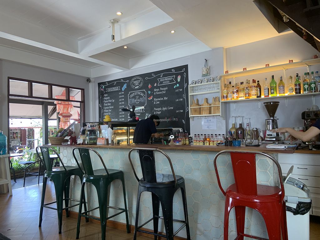 Small and nice cafe' in the Main Street of Luang Prabang . They have good vegan sandwiches and some cous cous and bruschetta . Nice staff