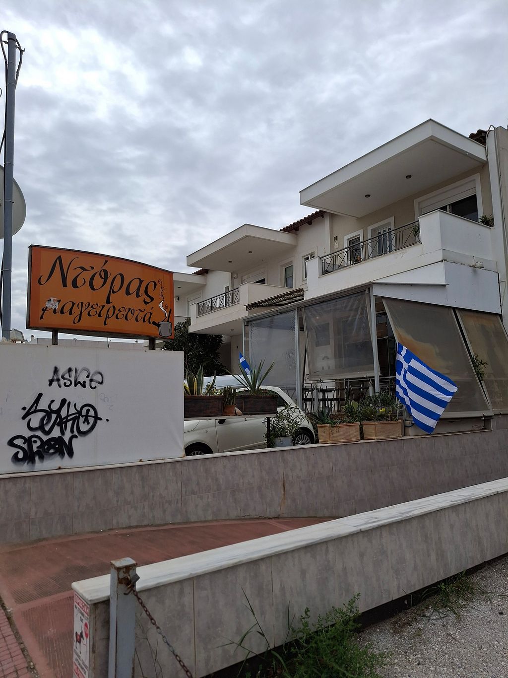 Starting from the nearby campsite (Camping Nea Makri), this is the best nearby takeaway for vegans that I found.