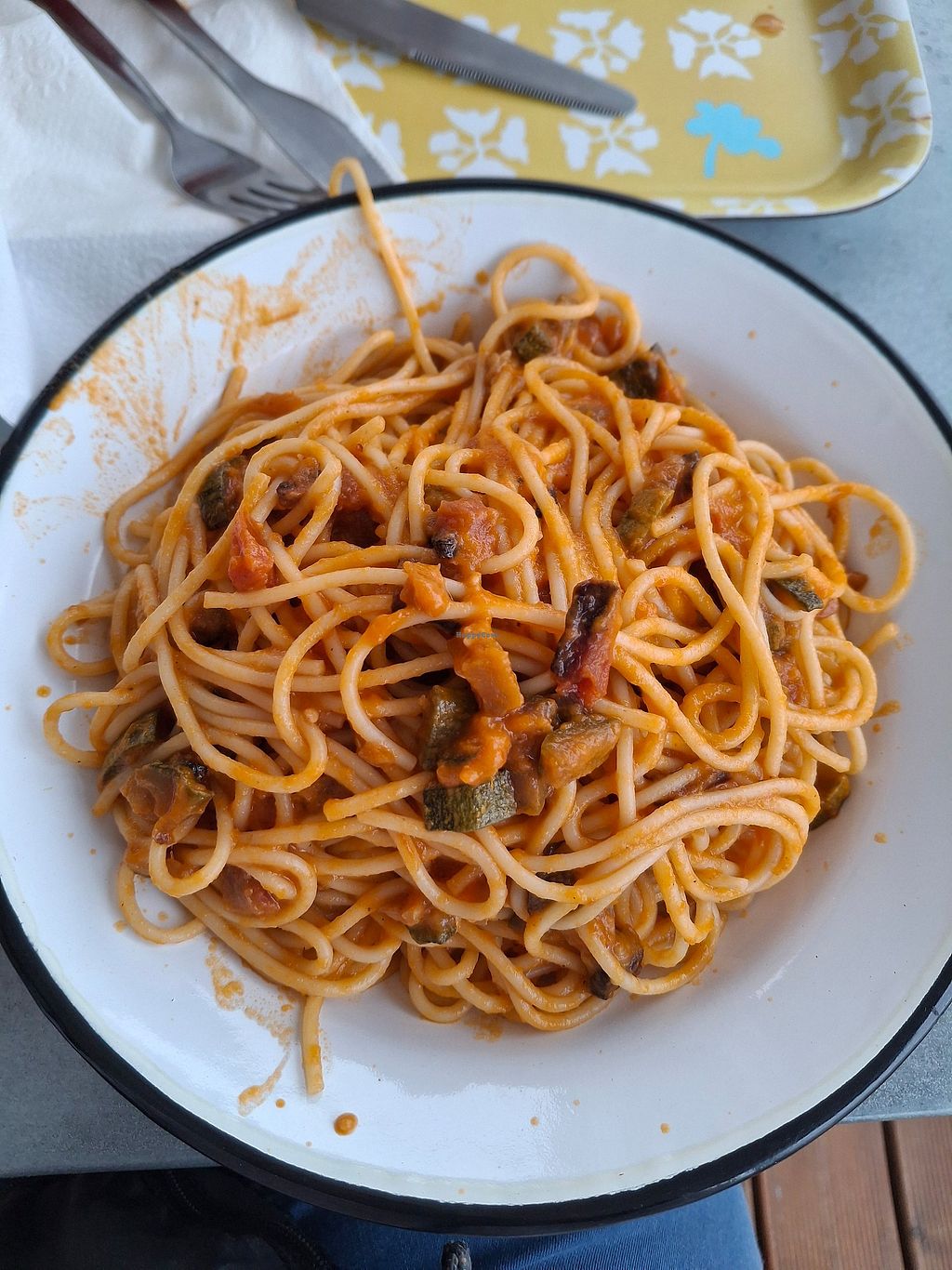 At the time of my two visits, there were 5 to 6 vegan meals available. The very friendly owner told me that this is about the average number in the daily changing menu.