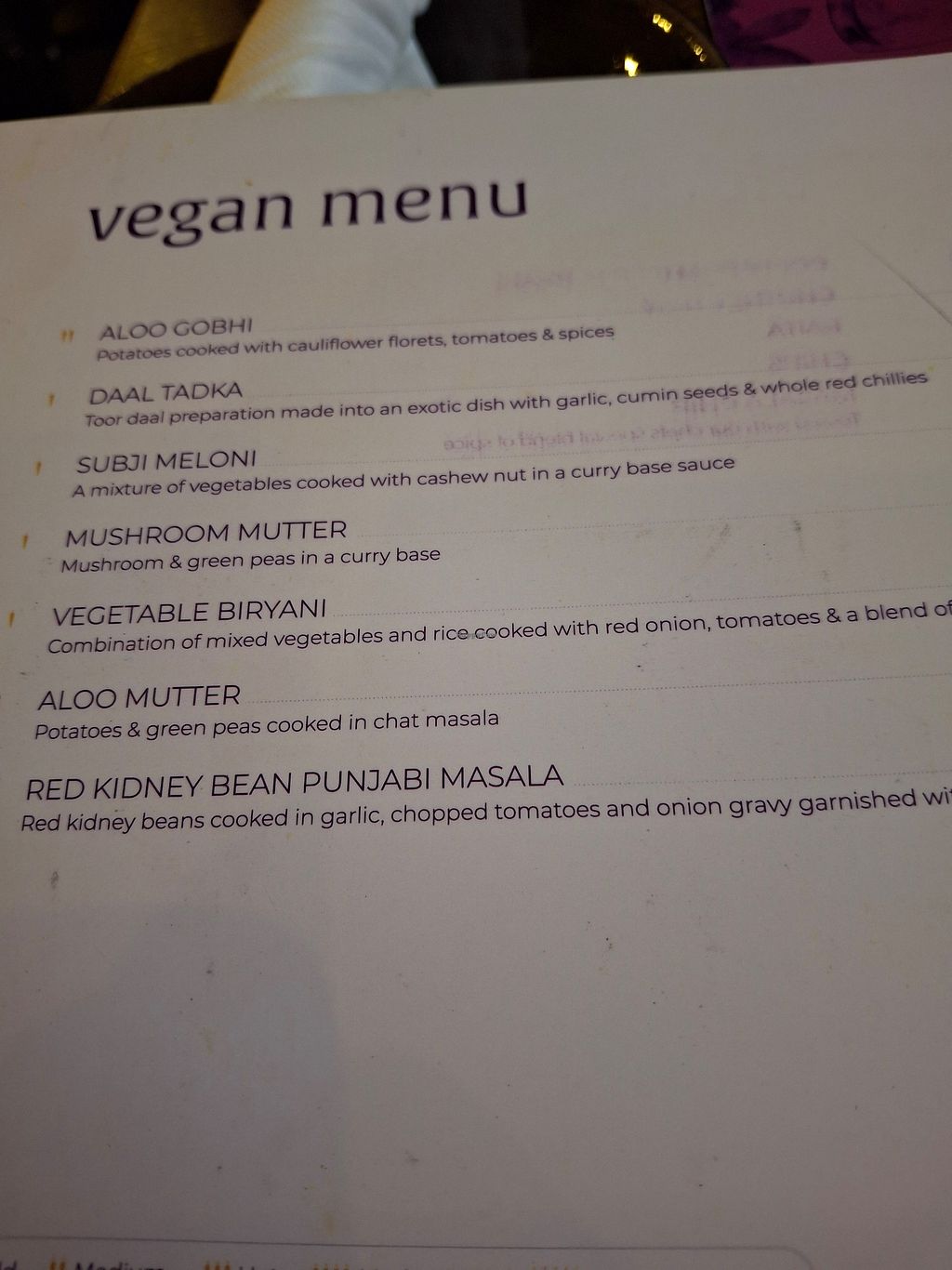 Went the other week with my partner and had an amazing meal! We shared a starter, and I ordered one of the vegan mains with kidney beans. We also got a couple mocktails each and they were so good, we had to stop ourselves from chugging them down. I’d definitely recommend this restaurant! There were several vegan mains on the menu.