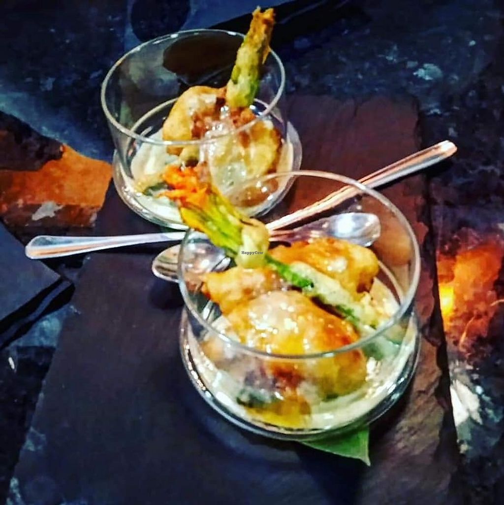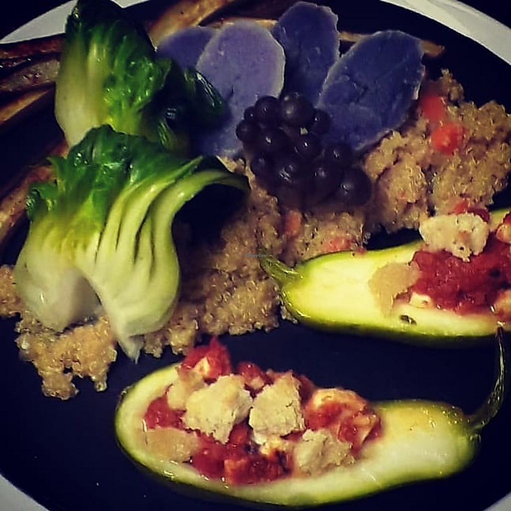 Sweet potato stuffed with chicken substitute (waiter told me was Heura…