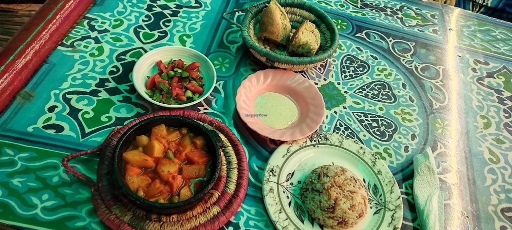 Ordered two vegetable tagines here which were served with rice, salad and bread. It was filling and satisfying, mainly potato based. The main selling point is the view across the Nile to the mainland. Staff were friendly and they sell beer, which is not always easy to come by.