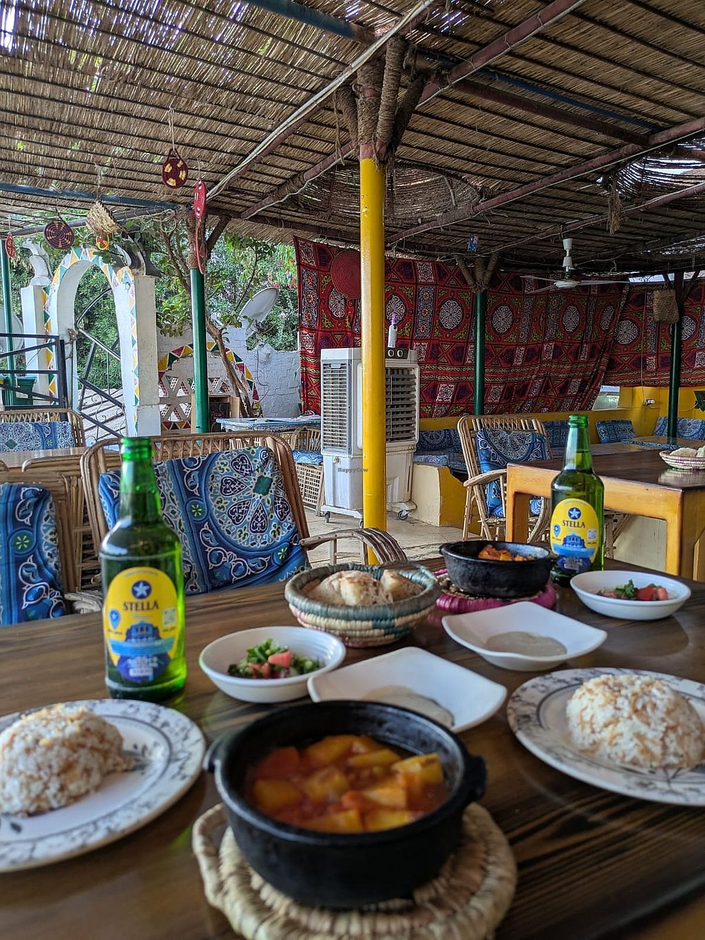 Gente encantadora, comida rica, varias opciones veganas que ellos te señalan perfectamente. Buen precio y buena calidad. Y el sitio, TOP. La terraza en la misma orilla del Nilo es un lugar en el que quedarte un buen rato a observar el ir y venir de los nubios. 💙