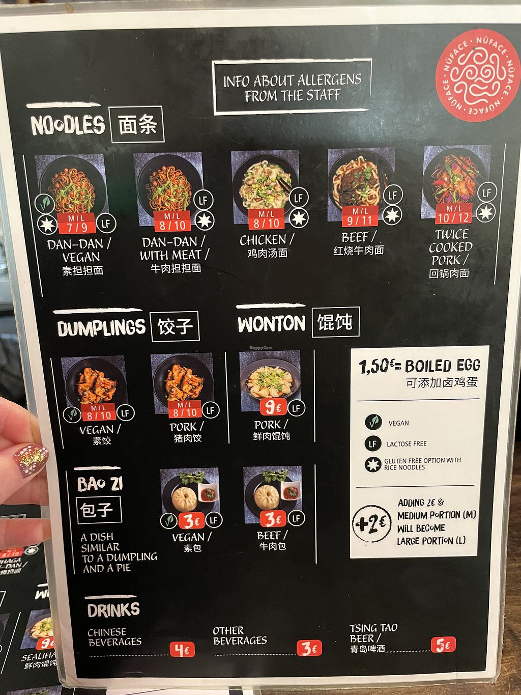 NuFace offers a few vegan items. The dumplings are quite spicy but rather like an appetizer, not very filling. Their bubble teas are milky and syrupy, more of a milkshake kind. Prices are okay, somewhat high as everywhere in Balti Jaam.