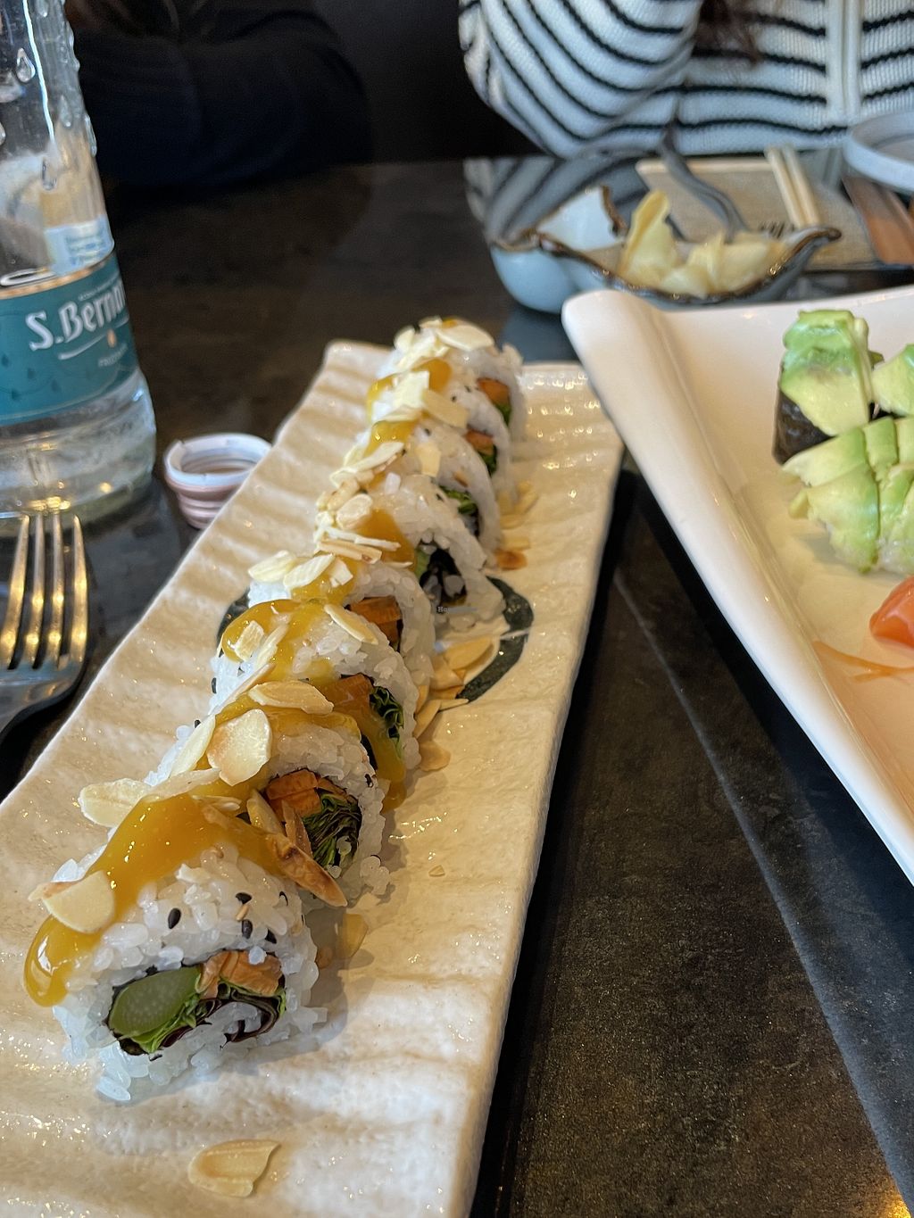 Buon sushi con piatti vegan chiaramente segnati sul menu. Più varietà di piatti vegan rispetto ad altri ristoranti in zona, anche un paio di roll creativi.