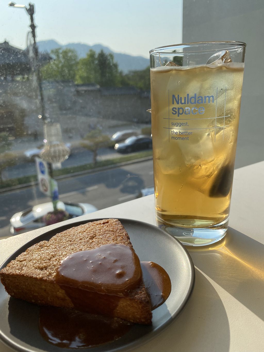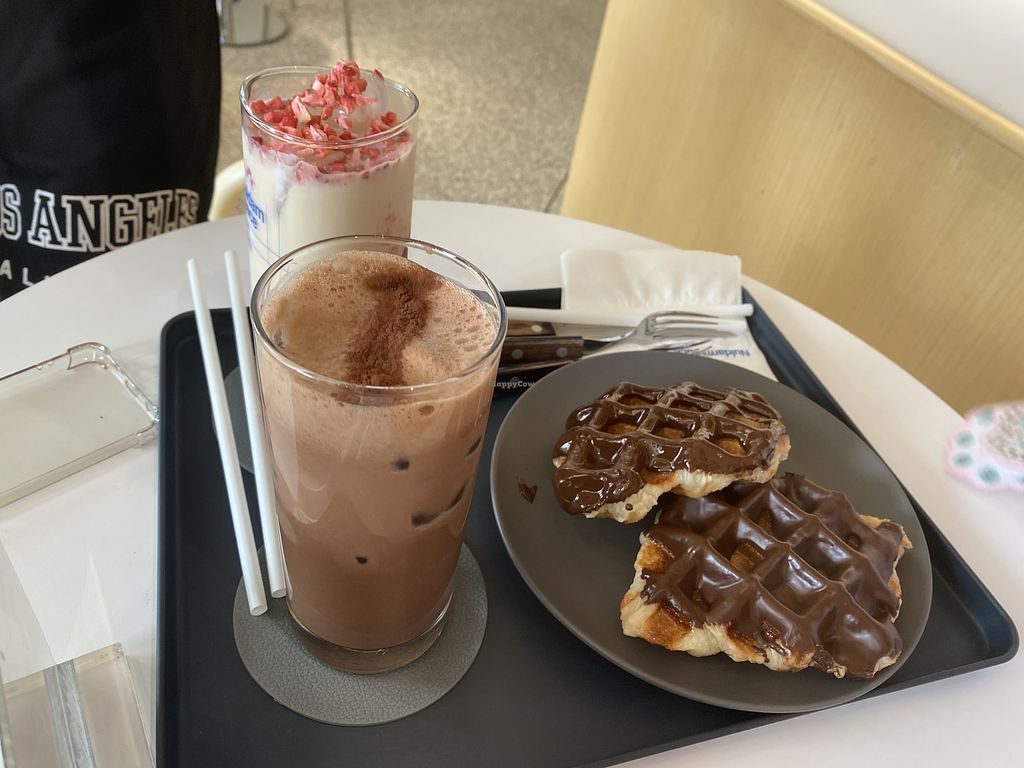 I had a vegan peanut creme latte and a chocolate croffle