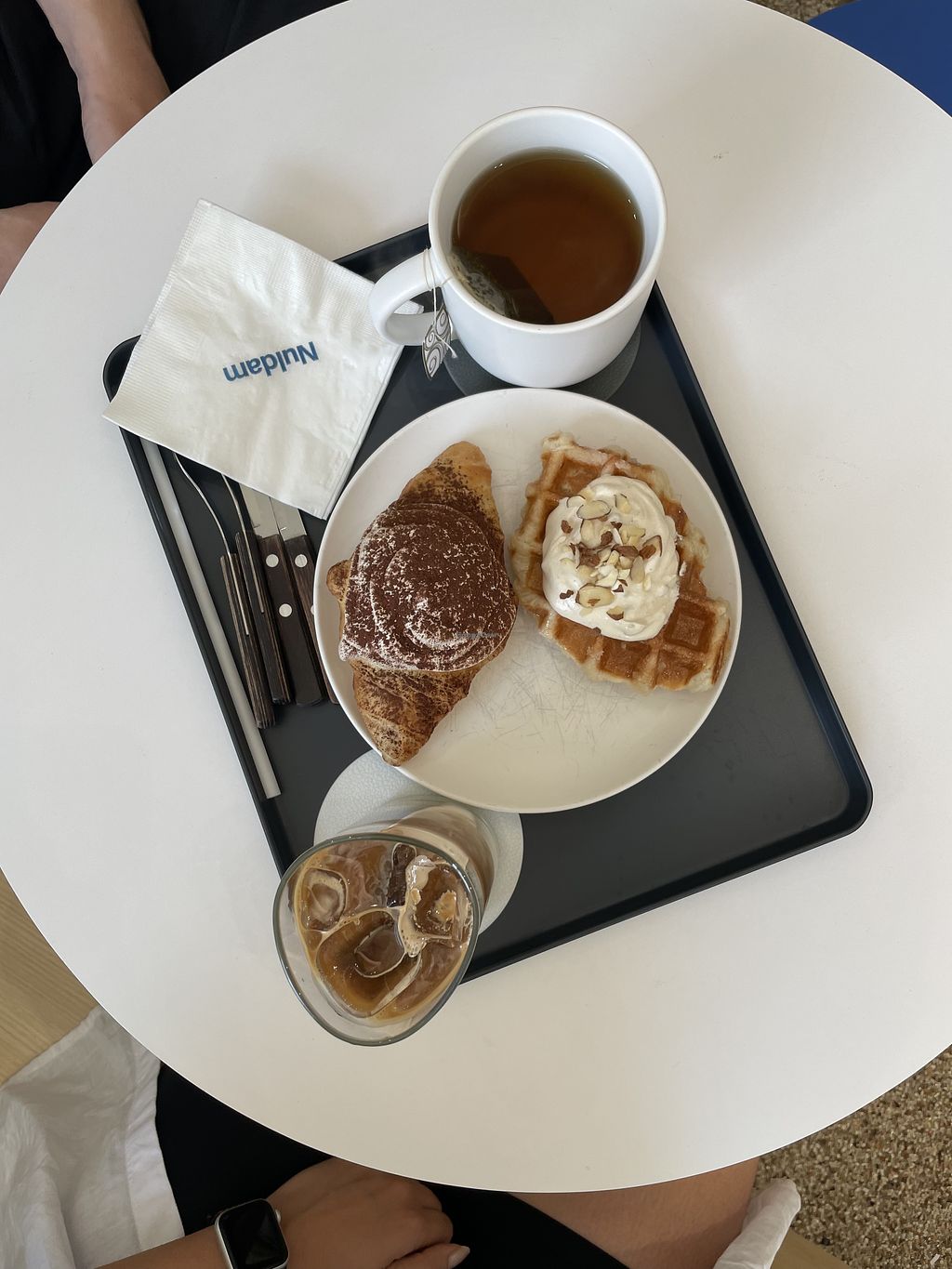 Americano, matcha and croffle with cream