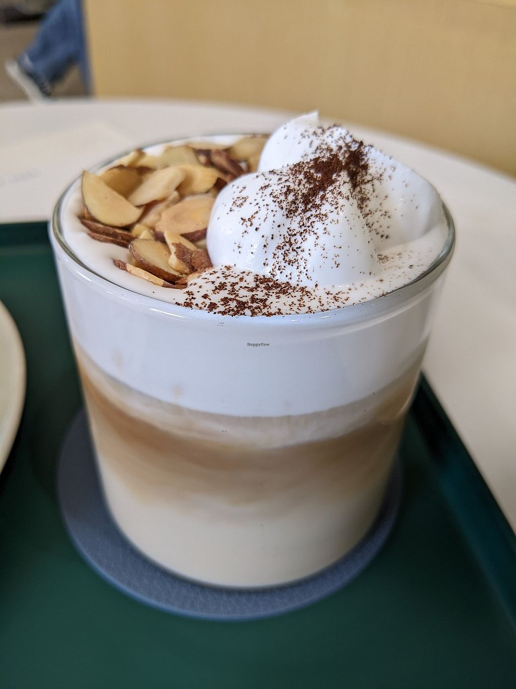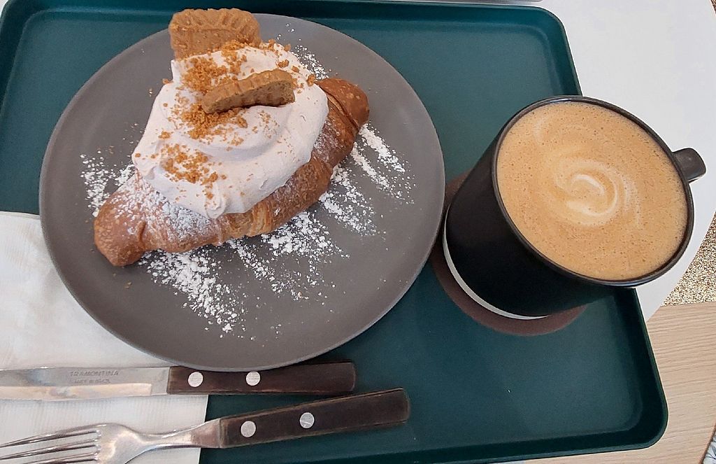 Decaf Cappucino with Oat Milk and a Croissant with whipped cream, cinn…