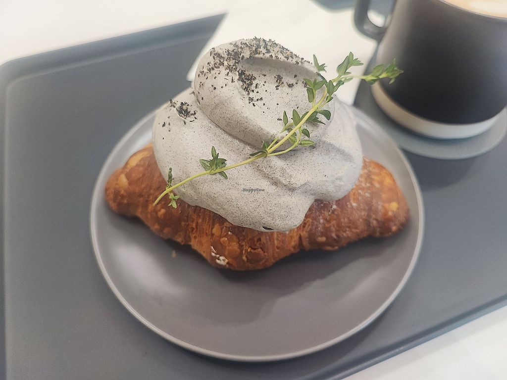 Black sesame croissant & almond latte