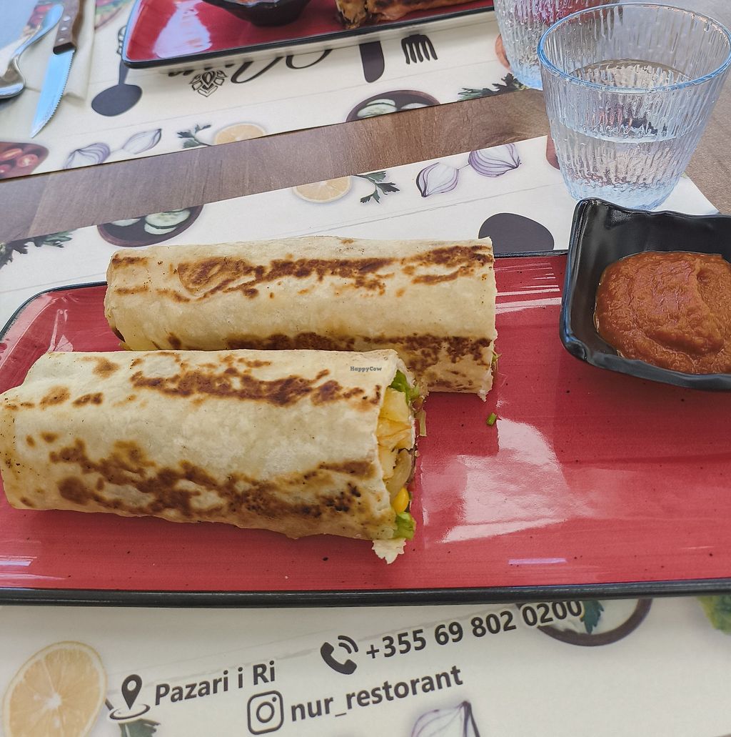 They have a "vegan menu" section in addition to their vegetarian menu section. In the "vegan menu" there is the quesadilla. I asked the waiter several times to confirm this was with vegan cheese (since I didn't see that anywhere in over a week in Albania) and not cow cheese, and he said yes, vegan cheese.