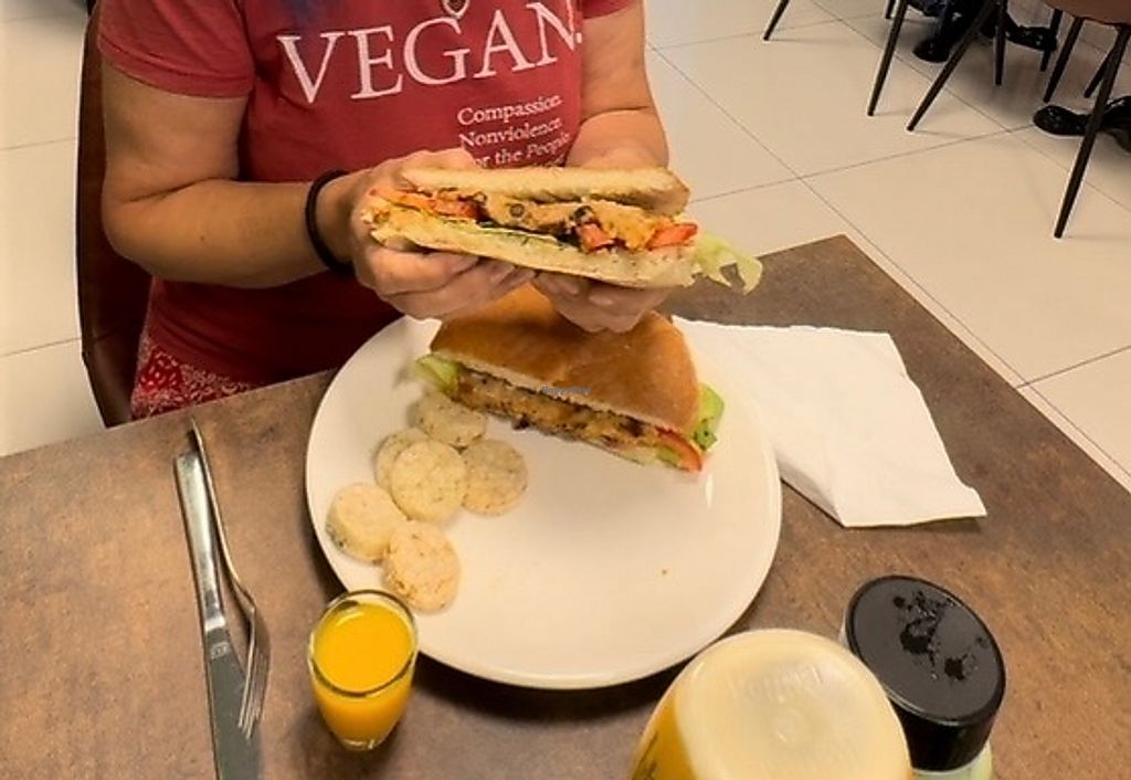100% Vegan Cafe, fresh, tasty, seasonal food, that doesn’t scream! I had a huge ‘Ftira’ sandwich with sweet potato with rosemary and garlic sauce. Delicious and filling and only €8. I also had the refreshing melon and orange juice, and superfood Square. Excellent atmosphere and customer service.