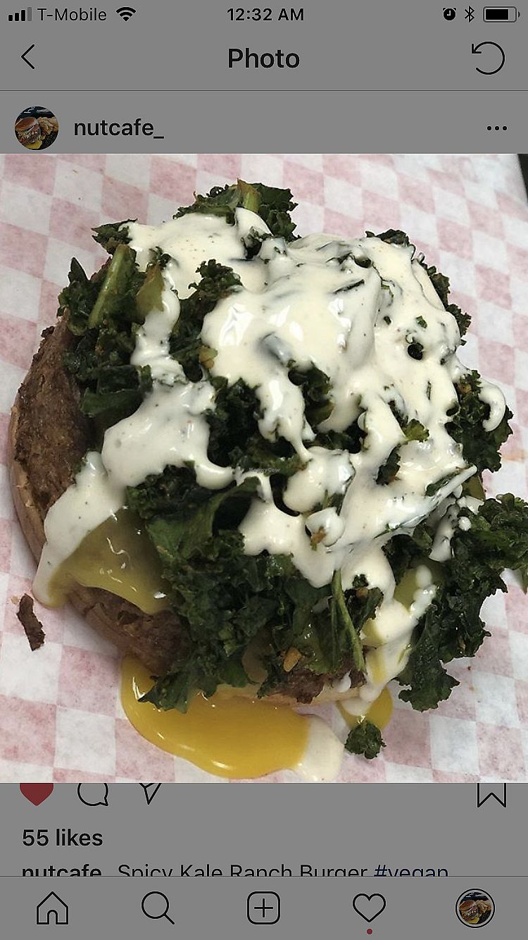 This vegan restaurant was very good and has so many options so it was hard to choose. The spicy kale ranch burger was very good but not really spicy. The fries were kinda soggy but well seasoned. The smoothies were good and very refreshing. The staff was very friendly. We had a big order but didn't take too long. We will be back when we're back in Atlanta!