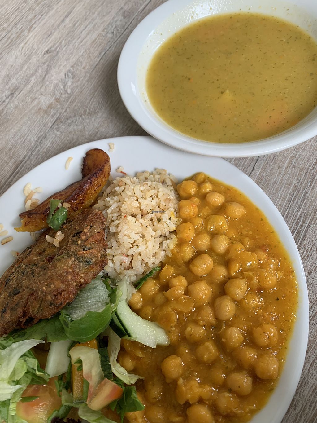 It's an experience to be here. It's crowded and loud, but the food is delicious and cheap. No tourists here, just locals. The restaurant is vegetarian but everything they serve is vegan, except the cakes. No menu just lunch of the day and you have two options. Both of them were delicious. We had soup, main, dessert and a drink for just 14000 cop (3,20€) each. It's not the nicest restaurant and it was a bit overwhelming because it was so crowded, but the staff was very friendly and helpful. And oh, dogs are allowed inside! 4 stars because not fully vegan.