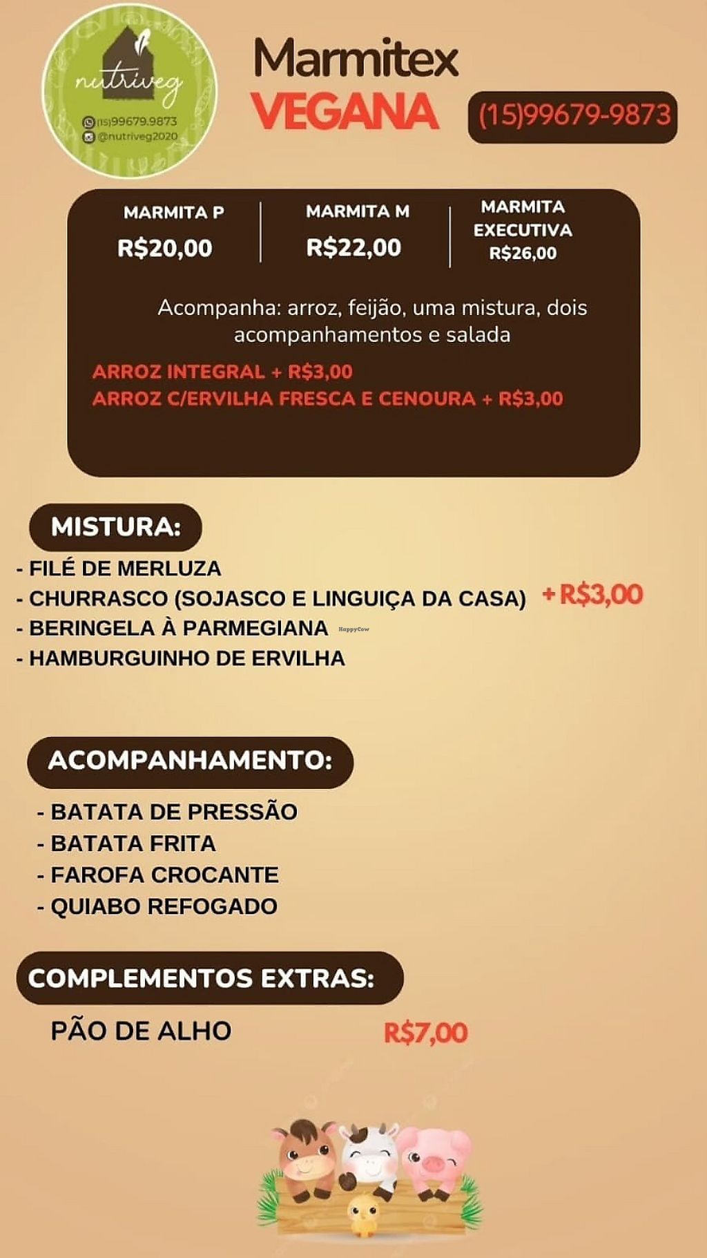 Vegan delivery offering daily lunch boxes, skewers, jackfruit coxinha and more. Open Mon-Fri 8:00am-1:30pm. Closed Sat-Sun.