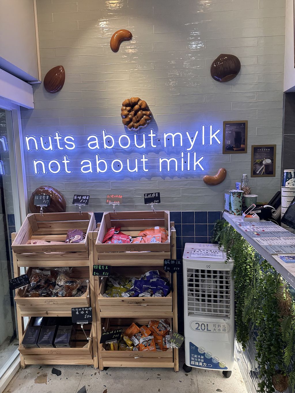 Nut mylk tea beverage bar, one of several outlets in Taiwan. Uses different kinds of nuts to make the tea and latte drinks. Also sells to go snacks like crepes (wraps). Founded 2018 formerly as JOOCE. Open Mon-Fri 10:30am-7:00pm, Sat-Sun 11:00am-7:00pm.