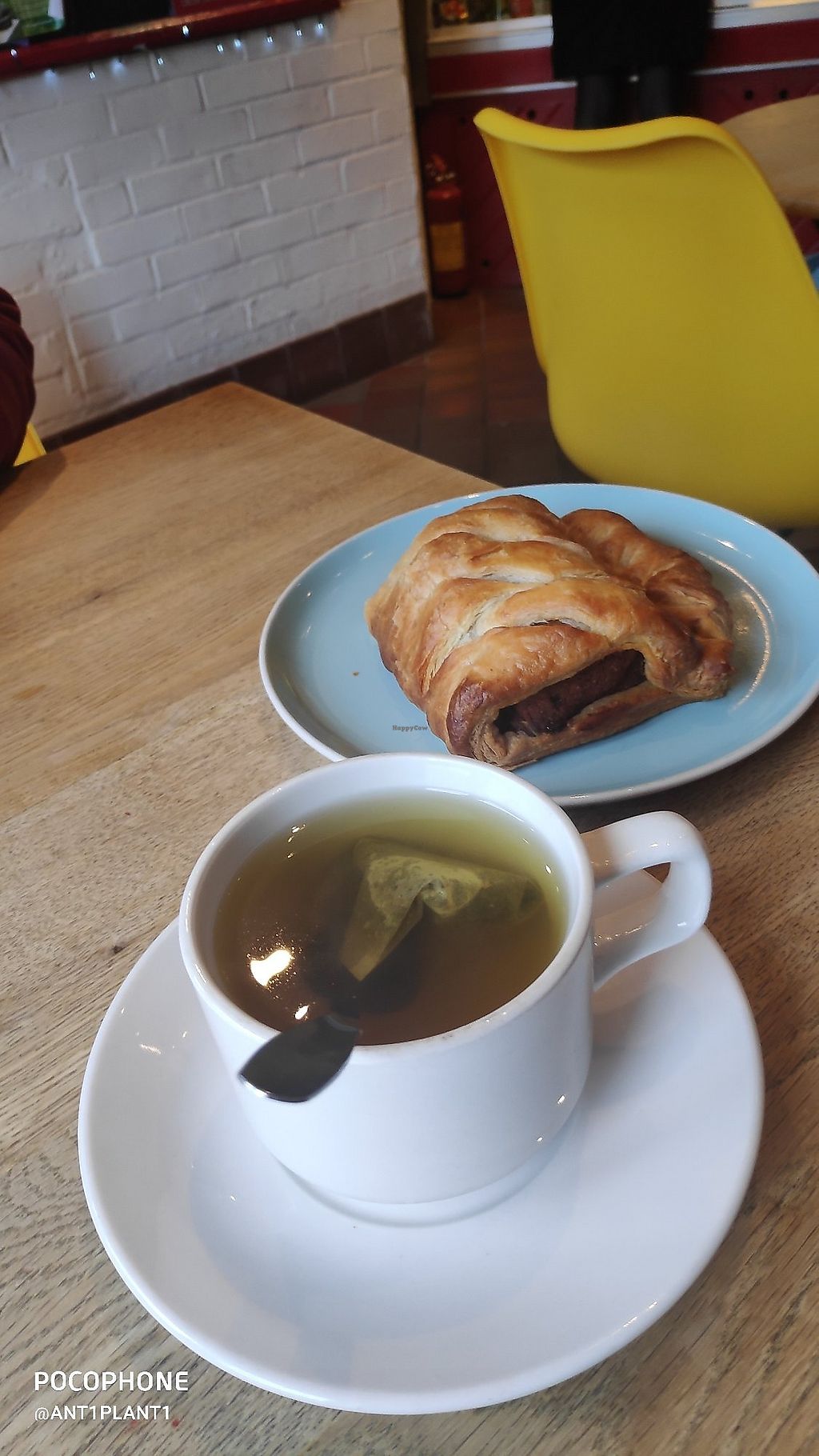 Had a green tea and a vegan sausage roll which was delicious. Lovely flakey pastry and a delicious packed filling giving a 'meaty' taste
