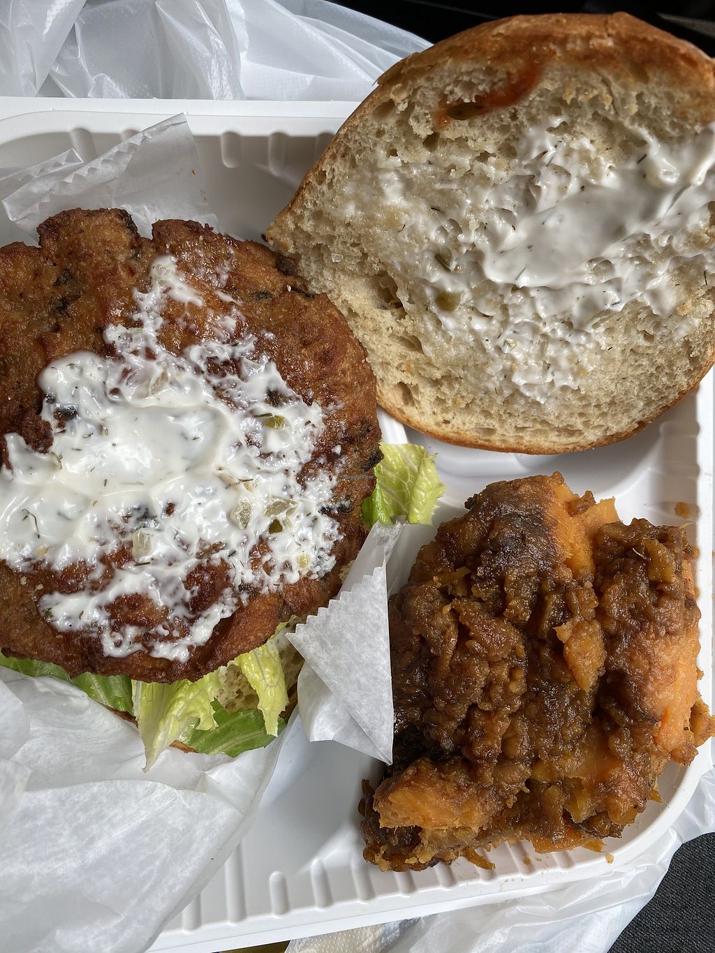 Vegan crabcake sandwich