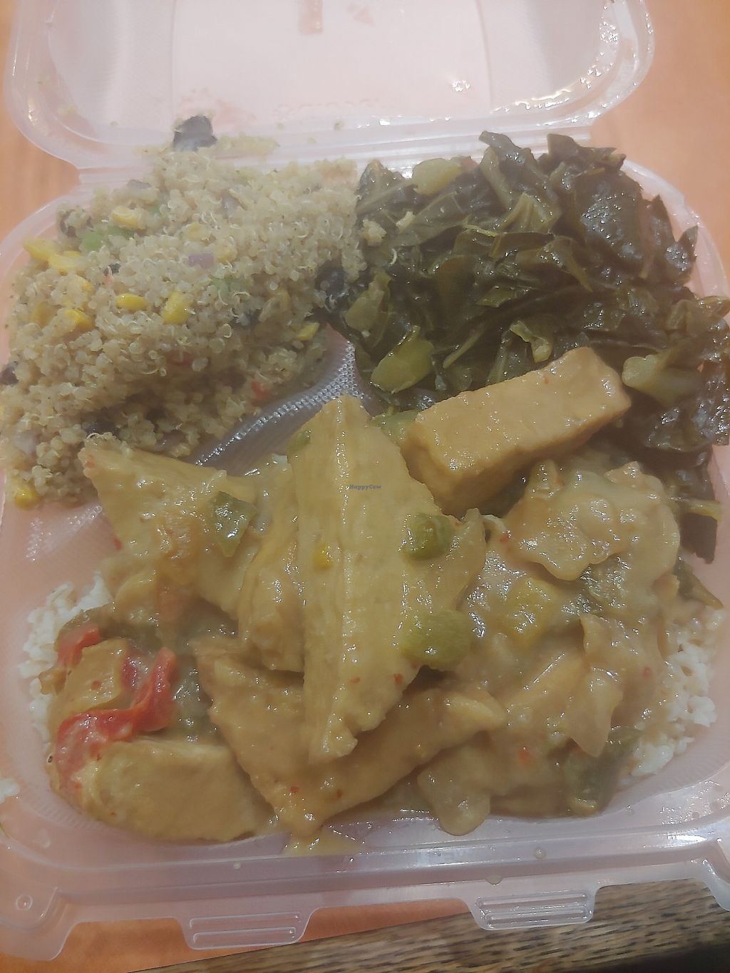 Curry Tofu, collards, and quinoa salad