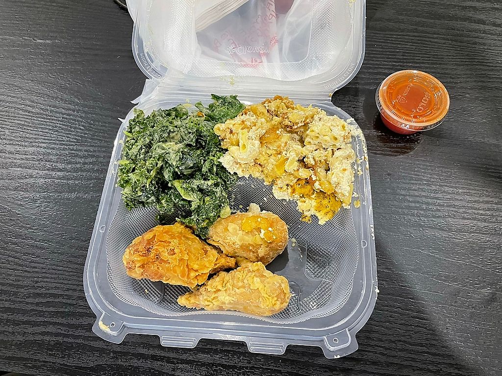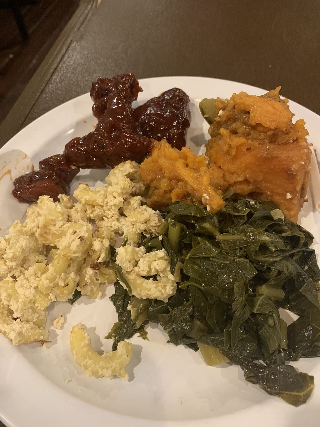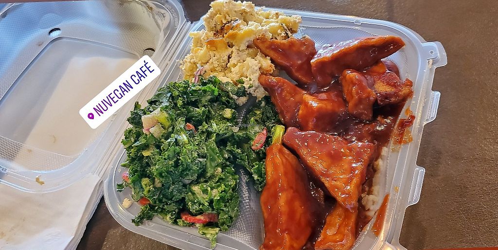 Chikn drummies, Mac and cheese, and sweet kale - AMAZING vegan soul fo…