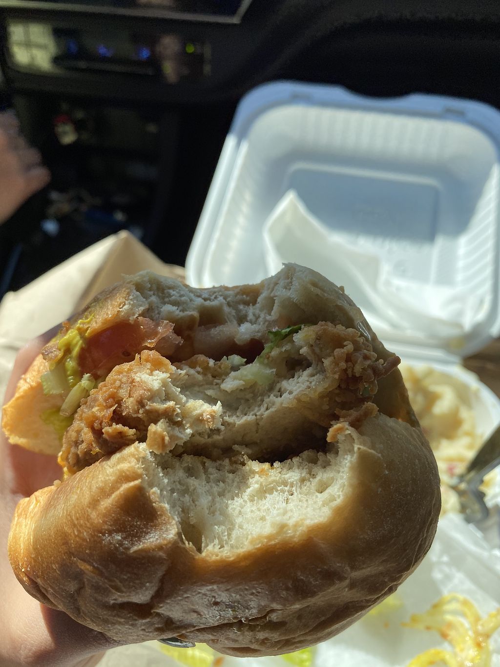 Cinnamon roll (stale, very hard, get cornbread instead)