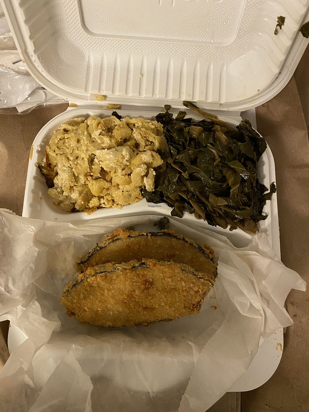 Fried chicken, macaroni, and collard greens! Magnificent !