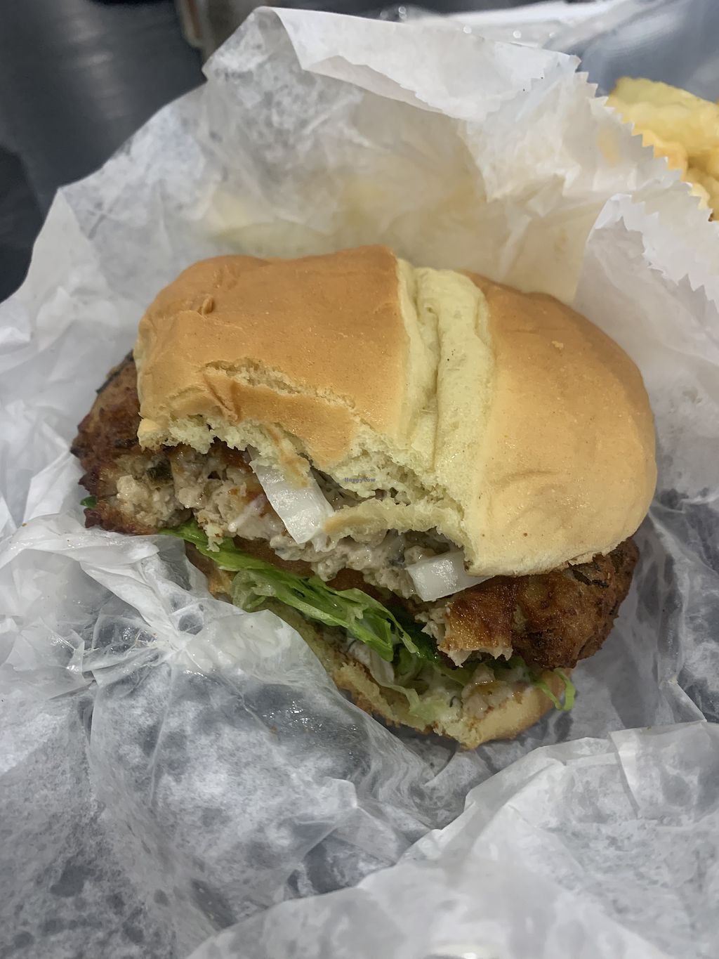 Delicious crab cakes, sweet potato casserole with watermelon kombucca