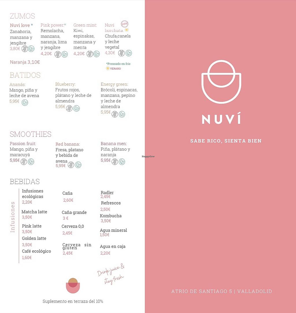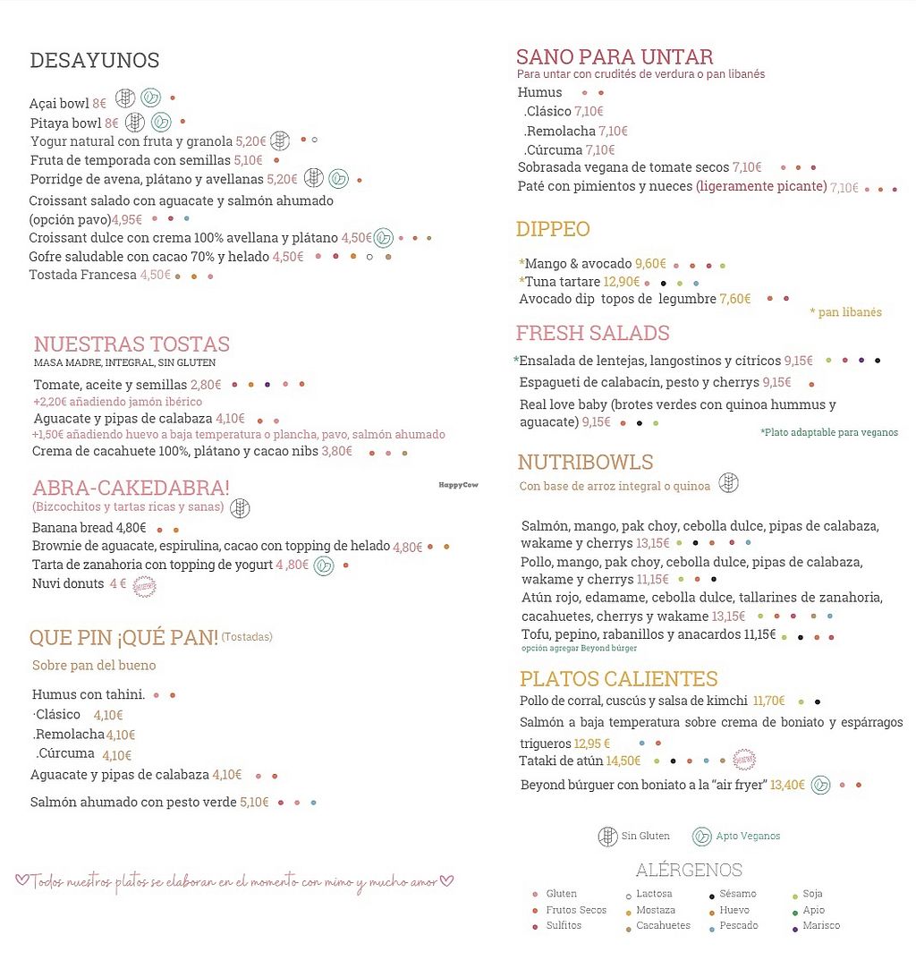 Serves meat, vegan options available. Restaurant with vegan choices. Menu is clearly labeled and includes a selection of vegan breakfast bowls, salads, nourish bowls, toast and more. Also offers smoothies, juice and vegan sweets. Open Mon-Thu 09:00-21:00, Fri 09:00-22:00, Sat 10:00-22:00. Closed Sun.