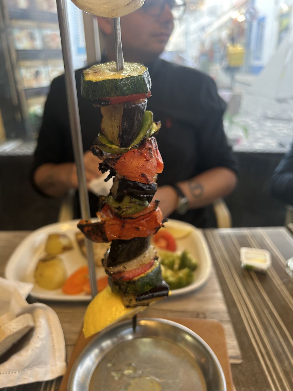 The veggie kabob ( he didn’t get vegan food) the fries were yummy too!…
